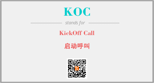 英文缩略词“KOC”经常作为“KickOff Call”的英文缩写来使用,中文表示:“启动呼叫”。本文将详细介绍英文缩写词KOC所代表英文单词,其对应的中文拼音、详细解释以及在英语中的流行度。此外,还有关于缩略词KOC的分类、应用领域及相关应用示例等。