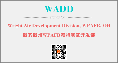 英文缩略词“WADD”经常作为“Wright Air Development Division, WPAFB, OH”的英文缩写来使用,中文表示:“俄亥俄州WPAFB赖特航空开发部”。本文将详细介绍英文缩写词WADD所代表英文单词,其对应的中文拼音、详细解释以及在英语中的流行度。此外,还有关于缩略词WADD的分类、应用领域及相关应用示例等。