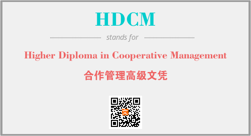 英文缩略词“HDCM”经常作为“Higher Diploma in Cooperative Management”的英文缩写来使用,中文表示:“合作管理高级文凭”。本文将详细介绍英文缩写词HDCM所代表英文单词,其对应的中文拼音、详细解释以及在英语中的流行度。此外,还有关于缩略词HDCM的分类、应用领域及相关应用示例等。