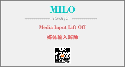 英文缩略词“MILO”经常作为“Media Input Lift Off”的英文缩写来使用,中文表示:“媒体输入解除”。本文将详细介绍英文缩写词MILO所代表英文单词,其对应的中文拼音、详细解释以及在英语中的流行度。此外,还有关于缩略词MILO的分类、应用领域及相关应用示例等。