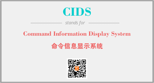 上述内容是“Command Information Display System”作为“CIDS”的缩写,解释为“命令信息显示系统”时的信息,以及英文缩略词CIDS所代表的英文单词,其对应的中文拼音、详细解释以及在英文中的流行度和相关分类、应用领域及应用示例等。