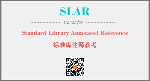 上述内容是“Standard Library Annotated Reference”作为“SLAR”的缩写,解释为“标准库注释参考”时的信息,以及英文缩略词SLAR所代表的英文单词,其对应的中文拼音、详细解释以及在英文中的流行度和相关分类、应用领域及应用示例等。