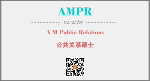 英文缩略词“AMPR”经常作为“A M Public Relations”的英文缩写来使用,中文表示:“公共关系硕士”。本文将详细介绍英文缩写词AMPR所代表英文单词,其对应的中文拼音、详细解释以及在英语中的流行度。此外,还有关于缩略词AMPR的分类、应用领域及相关应用示例等。