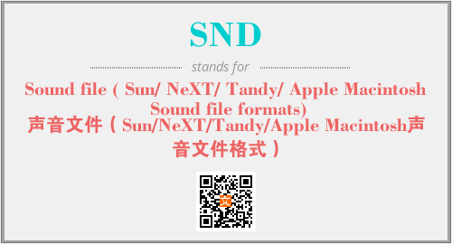 上述内容是“Sound file ( Sun/ NeXT/ Tandy/ Apple Macintosh Sound file formats)”作为“SND”的缩写,解释为“声音文件(Sun/NeXT/Tandy/Apple Macintosh声音文件格式)”时的信息,以及英文缩略词SND所代表的英文单词,其对应的中文拼音、详细解释以及在英文中的流行度和相关分类、应用领域及应用示例等。