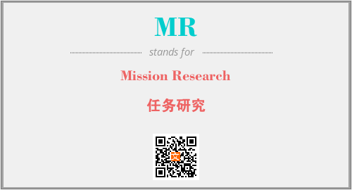 上述内容是“Mission Research”作为“MR”的缩写,解释为“任务研究”时的信息,以及英文缩略词MR所代表的英文单词,其对应的中文拼音、详细解释以及在英文中的流行度和相关分类、应用领域及应用示例等。