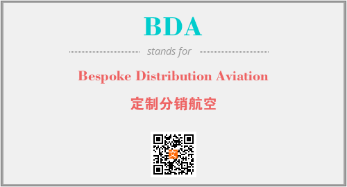 上述内容是“Bespoke Distribution Aviation”作为“BDA”的缩写,解释为“定制分销航空”时的信息,以及英文缩略词BDA所代表的英文单词,其对应的中文拼音、详细解释以及在英文中的流行度和相关分类、应用领域及应用示例等。