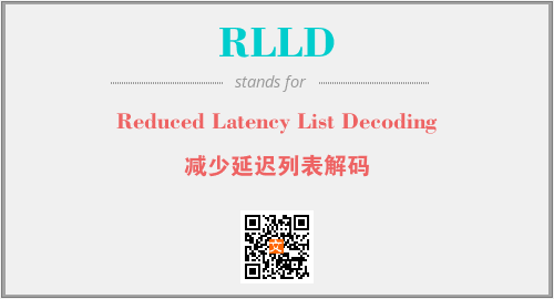 上述内容是“Reduced Latency List Decoding”作为“RLLD”的缩写,解释为“减少延迟列表解码”时的信息,以及英文缩略词RLLD所代表的英文单词,其对应的中文拼音、详细解释以及在英文中的流行度和相关分类、应用领域及应用示例等。