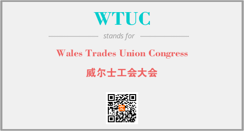 上述内容是“Wales Trades Union Congress”作为“WTUC”的缩写,解释为“威尔士工会大会”时的信息,以及英文缩略词WTUC所代表的英文单词,其对应的中文拼音、详细解释以及在英文中的流行度和相关分类、应用领域及应用示例等。