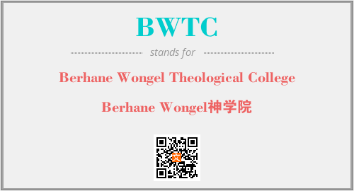 英文缩略词“BWTC”经常作为“Berhane Wongel Theological College”的英文缩写来使用,中文表示:“Berhane Wongel神学院”。本文将详细介绍英文缩写词BWTC所代表英文单词,其对应的中文拼音、详细解释以及在英语中的流行度。此外,还有关于缩略词BWTC的分类、应用领域及相关应用示例等。