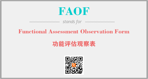 上述内容是“Functional Assessment Observation Form”作为“FAOF”的缩写,解释为“功能评估观察表”时的信息,以及英文缩略词FAOF所代表的英文单词,其对应的中文拼音、详细解释以及在英文中的流行度和相关分类、应用领域及应用示例等。