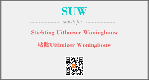 上述内容是“Stichting Uithuizer Woningbouw”作为“SUW”的缩写,解释为“粘贴Uithuizer Woningbouw”时的信息,以及英文缩略词SUW所代表的英文单词,其对应的中文拼音、详细解释以及在英文中的流行度和相关分类、应用领域及应用示例等。
