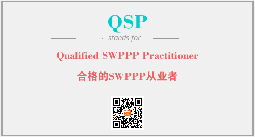 上述内容是“Qualified SWPPP Practitioner”作为“QSP”的缩写,解释为“合格的SWPPP从业者”时的信息,以及英文缩略词QSP所代表的英文单词,其对应的中文拼音、详细解释以及在英文中的流行度和相关分类、应用领域及应用示例等。