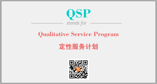英文缩略词“QSP”经常作为“Qualitative Service Program”的英文缩写来使用,中文表示:“定性服务计划”。本文将详细介绍英文缩写词QSP所代表英文单词,其对应的中文拼音、详细解释以及在英语中的流行度。此外,还有关于缩略词QSP的分类、应用领域及相关应用示例等。