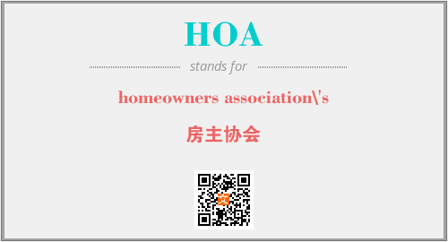 英文缩略词“HOA”经常作为“homeowners association\'s”的英文缩写来使用,中文表示:“房主协会”。本文将详细介绍英文缩写词HOA所代表英文单词,其对应的中文拼音、详细解释以及在英语中的流行度。此外,还有关于缩略词HOA的分类、应用领域及相关应用示例等。