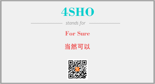 上述内容是“For Sure”作为“4SHO”的缩写,解释为“当然可以”时的信息,以及英文缩略词4SHO所代表的英文单词,其对应的中文拼音、详细解释以及在英文中的流行度和相关分类、应用领域及应用示例等。