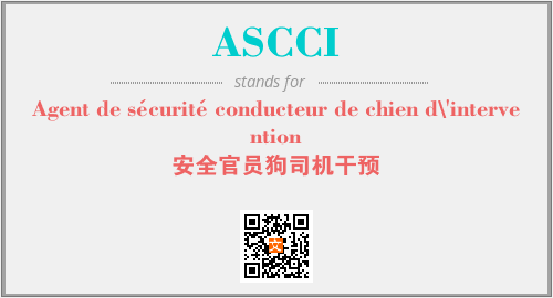 上述内容是“Agent de sécurité conducteur de chien d\'intervention”作为“ASCCI”的缩写,解释为“安全官员狗司机干预”时的信息,以及英文缩略词ASCCI所代表的英文单词,其对应的中文拼音、详细解释以及在英文中的流行度和相关分类、应用领域及应用示例等。