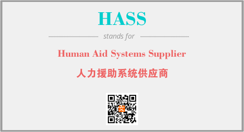 英文缩略词“HASS”经常作为“Human Aid Systems Supplier”的英文缩写来使用,中文表示:“人力援助系统供应商”。本文将详细介绍英文缩写词HASS所代表英文单词,其对应的中文拼音、详细解释以及在英语中的流行度。此外,还有关于缩略词HASS的分类、应用领域及相关应用示例等。