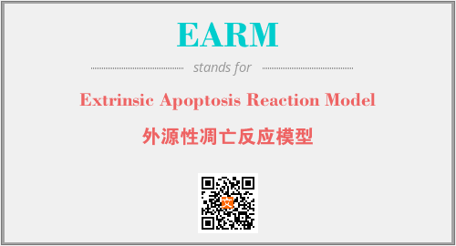 上述内容是“Extrinsic Apoptosis Reaction Model”作为“EARM”的缩写,解释为“外源性凋亡反应模型”时的信息,以及英文缩略词EARM所代表的英文单词,其对应的中文拼音、详细解释以及在英文中的流行度和相关分类、应用领域及应用示例等。