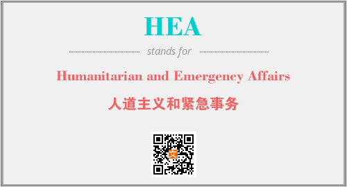 上述内容是“Humanitarian and Emergency Affairs”作为“HEA”的缩写,解释为“人道主义和紧急事务”时的信息,以及英文缩略词HEA所代表的英文单词,其对应的中文拼音、详细解释以及在英文中的流行度和相关分类、应用领域及应用示例等。