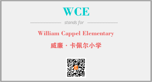 上述内容是“William Cappel Elementary”作为“WCE”的缩写,解释为“威廉·卡佩尔小学”时的信息,以及英文缩略词WCE所代表的英文单词,其对应的中文拼音、详细解释以及在英文中的流行度和相关分类、应用领域及应用示例等。