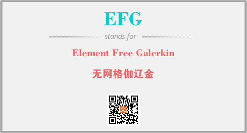上述内容是“Element Free Galerkin”作为“EFG”的缩写,解释为“无网格伽辽金”时的信息,以及英文缩略词EFG所代表的英文单词,其对应的中文拼音、详细解释以及在英文中的流行度和相关分类、应用领域及应用示例等。