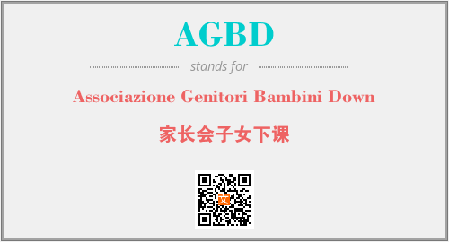 上述内容是“Associazione Genitori Bambini Down”作为“AGBD”的缩写,解释为“家长会子女下课”时的信息,以及英文缩略词AGBD所代表的英文单词,其对应的中文拼音、详细解释以及在英文中的流行度和相关分类、应用领域及应用示例等。