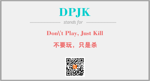 上述内容是“Don\'t Play, Just Kill”作为“DPJK”的缩写,解释为“不要玩,只是杀”时的信息,以及英文缩略词DPJK所代表的英文单词,其对应的中文拼音、详细解释以及在英文中的流行度和相关分类、应用领域及应用示例等。