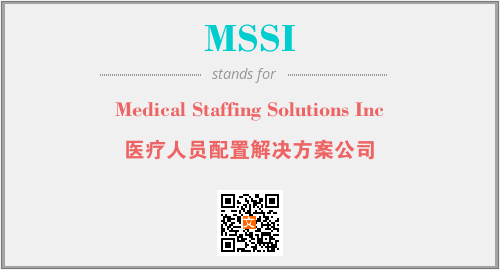 上述内容是“Medical Staffing Solutions Inc”作为“MSSI”的缩写,解释为“医疗人员配置解决方案公司”时的信息,以及英文缩略词MSSI所代表的英文单词,其对应的中文拼音、详细解释以及在英文中的流行度和相关分类、应用领域及应用示例等。