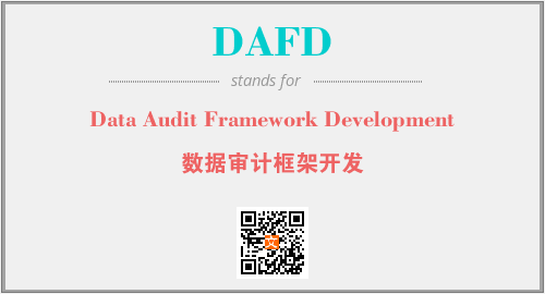 上述内容是“Data Audit Framework Development”作为“DAFD”的缩写,解释为“数据审计框架开发”时的信息,以及英文缩略词DAFD所代表的英文单词,其对应的中文拼音、详细解释以及在英文中的流行度和相关分类、应用领域及应用示例等。