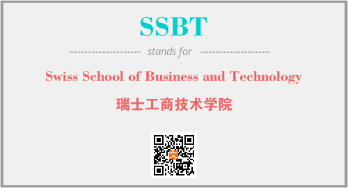 上述内容是“Swiss School of Business and Technology”作为“SSBT”的缩写,解释为“瑞士工商技术学院”时的信息,以及英文缩略词SSBT所代表的英文单词,其对应的中文拼音、详细解释以及在英文中的流行度和相关分类、应用领域及应用示例等。