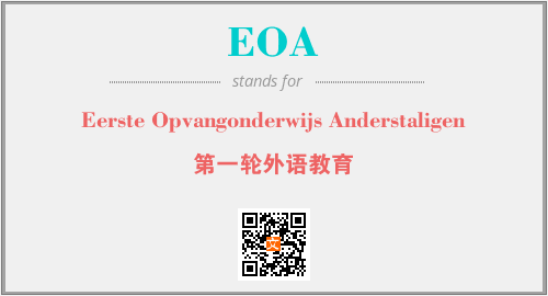 上述内容是“Eerste Opvangonderwijs Anderstaligen”作为“EOA”的缩写,解释为“第一轮外语教育”时的信息,以及英文缩略词EOA所代表的英文单词,其对应的中文拼音、详细解释以及在英文中的流行度和相关分类、应用领域及应用示例等。
