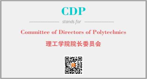 上述内容是“Committee of Directors of Polytechnics”作为“CDP”的缩写,解释为“理工学院院长委员会”时的信息,以及英文缩略词CDP所代表的英文单词,其对应的中文拼音、详细解释以及在英文中的流行度和相关分类、应用领域及应用示例等。
