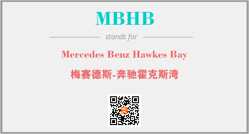英文缩略词“MBHB”经常作为“Mercedes Benz Hawkes Bay”的英文缩写来使用,中文表示:“梅赛德斯-奔驰霍克斯湾”。本文将详细介绍英文缩写词MBHB所代表英文单词,其对应的中文拼音、详细解释以及在英语中的流行度。此外,还有关于缩略词MBHB的分类、应用领域及相关应用示例等。