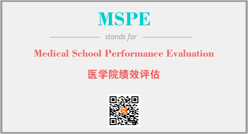 上述内容是“Medical School Performance Evaluation”作为“MSPE”的缩写,解释为“医学院绩效评估”时的信息,以及英文缩略词MSPE所代表的英文单词,其对应的中文拼音、详细解释以及在英文中的流行度和相关分类、应用领域及应用示例等。