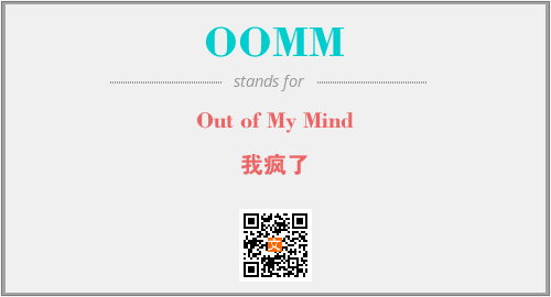 上述内容是“Out of My Mind”作为“OOMM”的缩写,解释为“我疯了”时的信息,以及英文缩略词OOMM所代表的英文单词,其对应的中文拼音、详细解释以及在英文中的流行度和相关分类、应用领域及应用示例等。