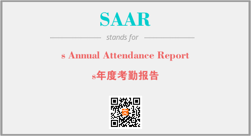 英文缩略词“SAAR”经常作为“s Annual Attendance Report”的英文缩写来使用,中文表示:“s年度考勤报告”。本文将详细介绍英文缩写词SAAR所代表英文单词,其对应的中文拼音、详细解释以及在英语中的流行度。此外,还有关于缩略词SAAR的分类、应用领域及相关应用示例等。