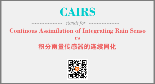 上述内容是“Continous Assimilation of Integrating Rain Sensors”作为“CAIRS”的缩写,解释为“积分雨量传感器的连续同化”时的信息,以及英文缩略词CAIRS所代表的英文单词,其对应的中文拼音、详细解释以及在英文中的流行度和相关分类、应用领域及应用示例等。