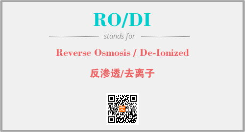 上述内容是“Reverse Osmosis / De-Ionized”作为“RO/DI”的缩写,解释为“反渗透/去离子”时的信息,以及英文缩略词RO/DI所代表的英文单词,其对应的中文拼音、详细解释以及在英文中的流行度和相关分类、应用领域及应用示例等。