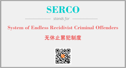 上述内容是“System of Endless Recidivist Criminal Offenders”作为“SERCO”的缩写,解释为“无休止累犯制度”时的信息,以及英文缩略词SERCO所代表的英文单词,其对应的中文拼音、详细解释以及在英文中的流行度和相关分类、应用领域及应用示例等。