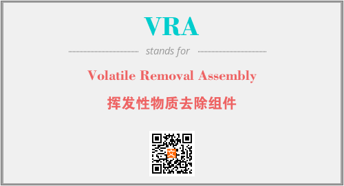 上述内容是“Volatile Removal Assembly”作为“VRA”的缩写,解释为“挥发性物质去除组件”时的信息,以及英文缩略词VRA所代表的英文单词,其对应的中文拼音、详细解释以及在英文中的流行度和相关分类、应用领域及应用示例等。