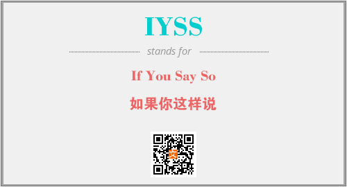上述内容是“If You Say So”作为“IYSS”的缩写,解释为“如果你这样说”时的信息,以及英文缩略词IYSS所代表的英文单词,其对应的中文拼音、详细解释以及在英文中的流行度和相关分类、应用领域及应用示例等。