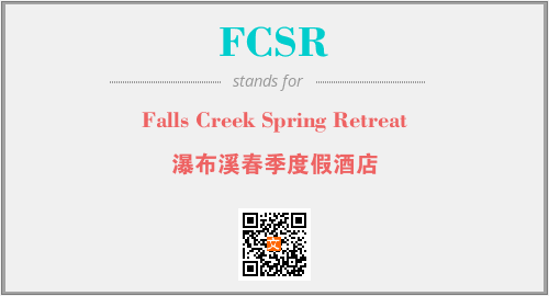 上述内容是“Falls Creek Spring Retreat”作为“FCSR”的缩写,解释为“瀑布溪春季度假酒店”时的信息,以及英文缩略词FCSR所代表的英文单词,其对应的中文拼音、详细解释以及在英文中的流行度和相关分类、应用领域及应用示例等。