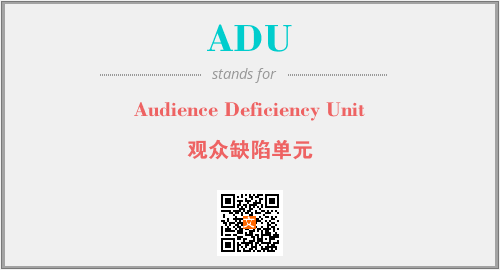 上述内容是“Audience Deficiency Unit”作为“ADU”的缩写,解释为“观众缺陷单元”时的信息,以及英文缩略词ADU所代表的英文单词,其对应的中文拼音、详细解释以及在英文中的流行度和相关分类、应用领域及应用示例等。