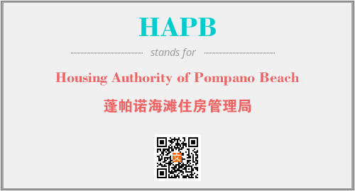英文缩略词“HAPB”经常作为“Housing Authority of Pompano Beach”的英文缩写来使用,中文表示:“蓬帕诺海滩住房管理局”。本文将详细介绍英文缩写词HAPB所代表英文单词,其对应的中文拼音、详细解释以及在英语中的流行度。此外,还有关于缩略词HAPB的分类、应用领域及相关应用示例等。