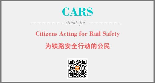 上述内容是“Citizens Acting for Rail Safety”作为“CARS”的缩写,解释为“为铁路安全行动的公民”时的信息,以及英文缩略词CARS所代表的英文单词,其对应的中文拼音、详细解释以及在英文中的流行度和相关分类、应用领域及应用示例等。