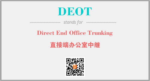 上述内容是“Direct End Office Trunking”作为“DEOT”的缩写,解释为“直接端办公室中继”时的信息,以及英文缩略词DEOT所代表的英文单词,其对应的中文拼音、详细解释以及在英文中的流行度和相关分类、应用领域及应用示例等。