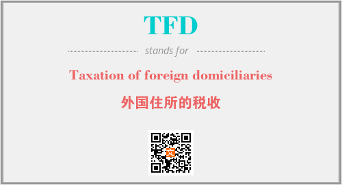 上述内容是“Taxation of foreign domiciliaries”作为“TFD”的缩写,解释为“外国住所的税收”时的信息,以及英文缩略词TFD所代表的英文单词,其对应的中文拼音、详细解释以及在英文中的流行度和相关分类、应用领域及应用示例等。