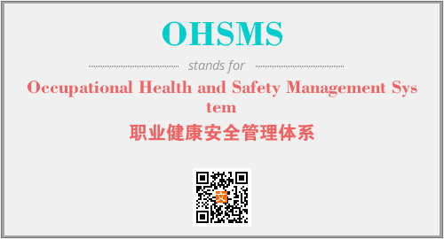 英文缩略词“OHSMS”经常作为“Occupational Health and Safety Management System”的英文缩写来使用,中文表示:“职业健康安全管理体系”。本文将详细介绍英文缩写词OHSMS所代表英文单词,其对应的中文拼音、详细解释以及在英语中的流行度。此外,还有关于缩略词OHSMS的分类、应用领域及相关应用示例等。