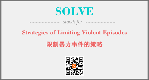 上述内容是“Strategies of Limiting Violent Episodes”作为“SOLVE”的缩写,解释为“限制暴力事件的策略”时的信息,以及英文缩略词SOLVE所代表的英文单词,其对应的中文拼音、详细解释以及在英文中的流行度和相关分类、应用领域及应用示例等。