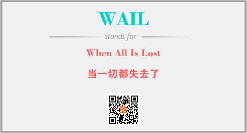 上述内容是“When All Is Lost”作为“WAIL”的缩写,解释为“当一切都失去了”时的信息,以及英文缩略词WAIL所代表的英文单词,其对应的中文拼音、详细解释以及在英文中的流行度和相关分类、应用领域及应用示例等。